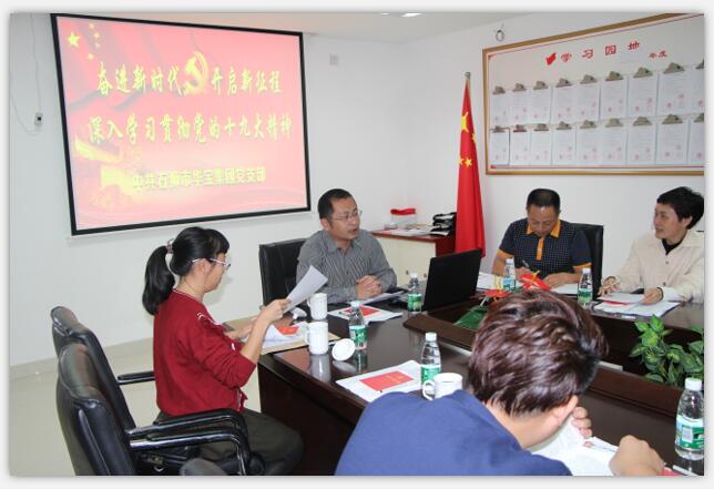 2017年11月18日,在祥芝镇党委的关怀下,华宝集团党支部正式召开学习党的“十九大精神”和学习新党章的全体党员大会,会议很荣幸地邀请到祥芝镇党委书记蔡振宇主持并讲解“十九大精神”和新党章党规。会上,蔡振宇书记以幽默风趣的语言,深入浅出、提纲挈领地介绍了党的十九大报告,给华宝集团的所有党员们上了生动的一课。
