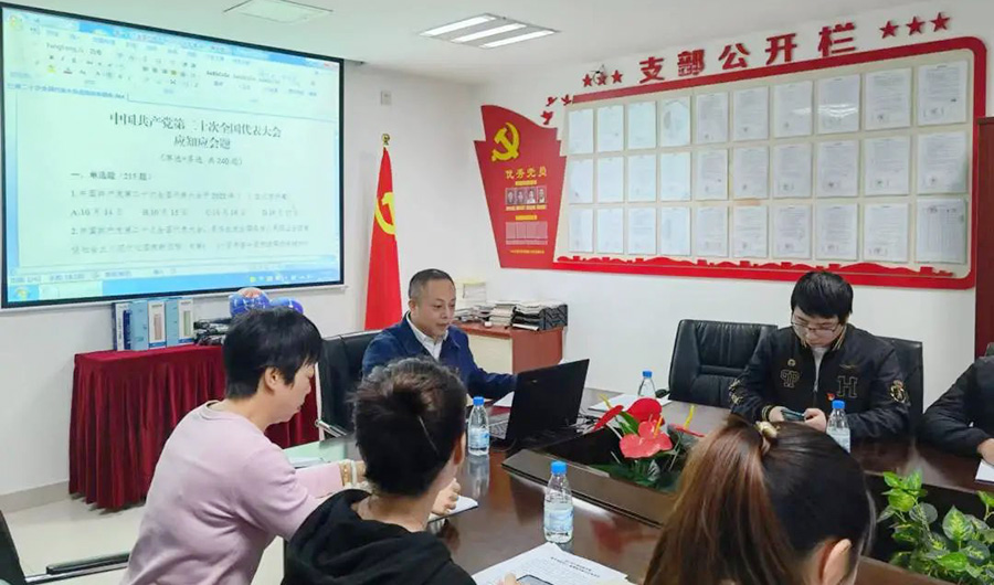 为认真学习贯彻党的二十大精神,检验和巩固理论学习成果,会上开展了党的二十大报告应知应会知识测试,引导党员以考促学、以学促用、知行合一。支部党员积极抢答,气氛活跃,推动学习贯彻党的二十大精神往深走、往实里走。