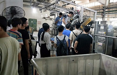 2018年6月12日,来自泉州纺织服装职业学院染整技术专业的50名学生,参观了华宝集团石狮豪宝染织有限公司,副总经理吴灶生等领导进行接待。